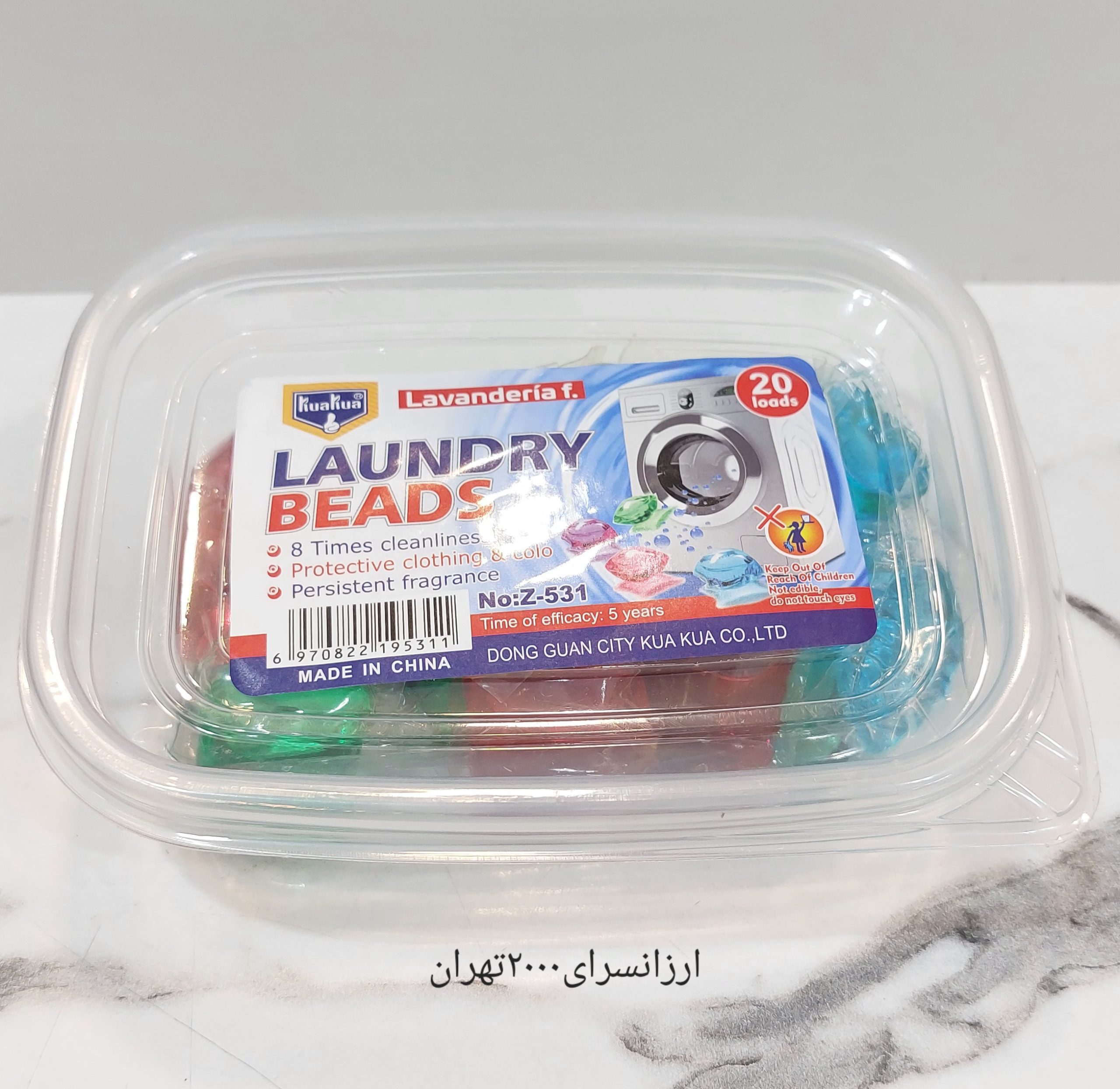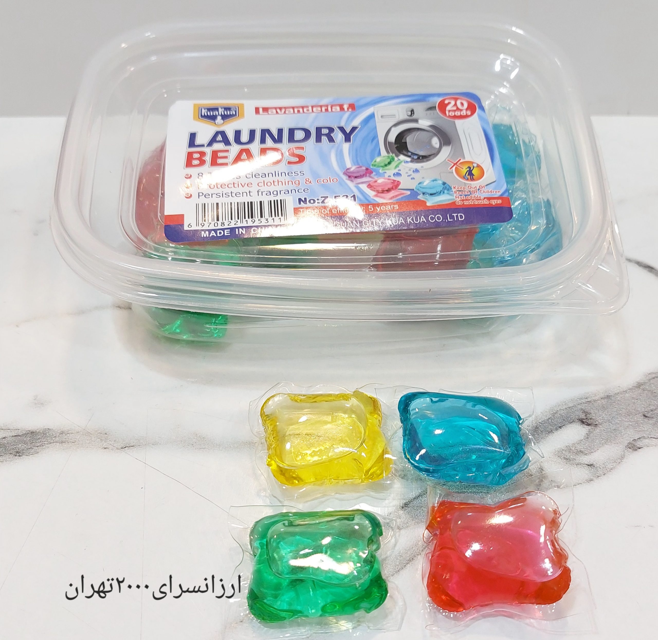 کپسول شوینده Laundry Beads بسته ۲۰ عددی؛ تمیزکنندگی قوی، عطری ماندگار و محافظ رنگ پارچه. مناسب انواع لباس و ماشین لباسشویی. عرضه توسط ارزانسرای ۲۰۰۰ تهران همراه با تست سلامت، ارسال فوری و پرداخت درب منزل.